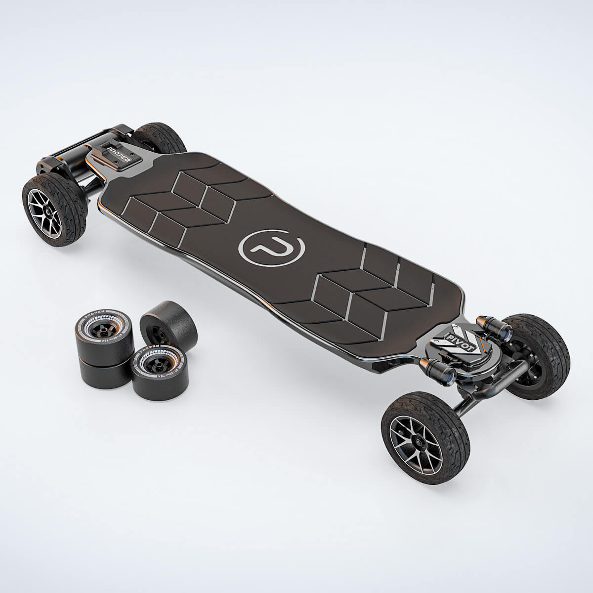 We listen to our owners. They made clear that some version of a padded grip was desirable but only if it didn’t look exactly like all of the other hexagon clones that have been recycled for years, and only if it still felt like Propel EV. Our North American designers wholeheartedly agreed and crafted something special. The Pivot’s 3mm padded grip isn’t only super grippy and comfortable on the feet, but it also contrasts beautifully with our Carbon hybrid BVR unibody to create a stunning 3D impression that contrasts our deck’s unique reflective qualities and matte grip for a tremendous effect that has to be seen in person to be believed.
